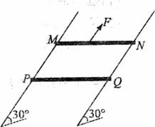 。空间有垂直于导轨平面的匀强磁场,磁感应强度B=0.4T。现用沿导轨平面向上的力F=1.2N垂直作用于金属棒MN,取g=10m/s2。试求: