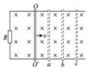 垂直于导轨放置,现使棒以一定的初速度v向右运动,当金属棒通过位置a、b时速度分别是v