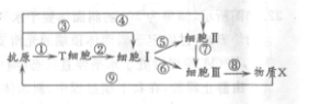 B.能特异性识别抗原的有细胞I、Ⅱ和Ⅲ![]()