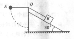 22.如图所示,倾角为30o的斜面体置于水平地面上,一根不可伸长的轻绳两端分别系着小球A和物块B,跨过固定于斜面体顶端的光滑支点O。已知A的质量为m,B的质量为4m 现用手托住A,使OA段绳恰处于水平伸直状态(绳中无拉力),OB绳平行于斜面,此时物块B静止不动。将 A由静止释放,在其下摆过程中,斜面体始终保持静止,下列判断中正