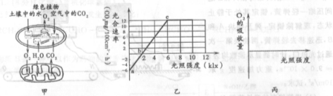 (5)图乙中光合速率曲线是用CO2吸收量(mg/100cm2·h)表示的,如果改为用O2的吸收量(mg/loocm2.h)表示,请在图丙中绘出光照强度与光合速率关系的大致曲线a