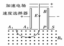 图示是质谱仪的工作原理示意图.带电粒子被加速电场加速后,进入速度选择器.速度选择器内相互正交的匀强磁场和匀强电场的强度分别为B和E.平板S上有可让粒子通过的狭缝P和记录粒子位置的胶片A1A2.平板S下方有强度为B0的匀强磁场.下列表述正确的是