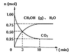 CO2、CH3OH(g)和H2O(g)的物质的量(n)随时间