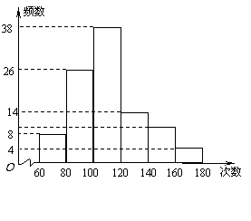 21.某中学体育俱乐部的老师对学生的体能进行摸底测试,考试项目有跳绳、仰卧起坐等,体育老师随机从全校3600名学生中抽取统计了100名学生60秒跳绳的成绩,列出的频数分布直方图如下(每个分组包括左端点,不包括右端点):