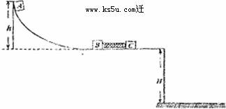 17.(13分)如图所示,一轻质弹簧的一端固定在滑块B上,另一端与滑块C接触但未连接,该整体静止放在离地面高为H的光滑水平桌面上。现有一滑块A从光滑曲面上离桌面h高处由静止开始下滑下,与滑块B发生碰撞(时间极短)并粘在一起压缩弹簧推动滑块C向前运动,经一段时间,滑块C脱离弹簧,继续在水平桌面上匀速运动一段时间后从桌面边缘飞出。已知