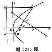 21.如题(21)图,倾斜角为a的直线经过抛物线