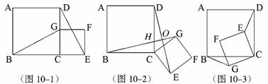 ②将图10-1中的正方形CEFG绕着点C按顺时针(或逆时针)方向旋转任意角度