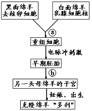 (6分)世界上第一只克隆绵羊“多利”的培育程序如右图所示。请看图后回答: