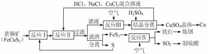 注:反应Ⅱ的离子方程式为Cu2++CuS+4Cl-=2[CuCl2]-+S 请回答下列问题: