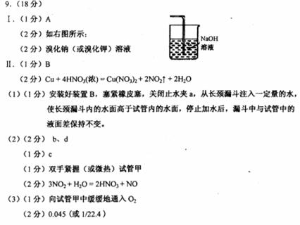 9.(18分)图Ⅰ是化学实验室中常用制备、干燥气体的部分仪器装置。某学校同学利用中学常用试剂及仪器设计下列实验。