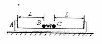,槽内有两个小球B、C,它们的质量分别是mB=m,mC=2m,两球间是很短的被压缩的轻弹簧(球与弹簧不连接),且B球到木槽左端、C球到木槽右端的距离均为L,这时弹簧的弹性势能为