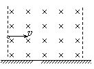 17、如图所示,在地面上存在一个有界的沿水平方向B=1 T的匀强磁场区域。一个带正电的荷量为q=0.2 C、质量m=0.12 kg的小球,沿水平方向以v=5 m/s垂直射入该磁场区域,经一段时间后小球穿过该区域,这一过程中