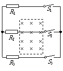 如图所示电路,虚线框内存在均匀变化的匀强磁场,三个电阻大小之比R1∶R2∶R3 = 1∶2∶3.当S1、S2闭合,S3 断开时,闭合的回路中感应电流为I;当S2、S3闭合,S1 断开时,闭合的回路中感应电流为5I;当S1、S3闭合,S2 断开时,闭合的回路中感应电流是