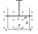 21、两根足够长的光滑导轨竖直放置,间距为L,底端接阻值为R的电阻.将质量为m的金属棒悬挂在一个固定的轻弹簧下端,金属棒和导轨接触良好,导轨所在平面与磁感应强度为B的匀强磁场垂直,如图所示.除电阻R外其余电阻不计.现将金属棒从弹簧原长位置由静止释放,则