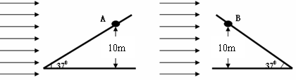 15.两根完全相同的光滑的细直杆上各套有一个完全相同的小球,均与水平面成为37°角放置,将两小球均从离地面10m高处由静止释放,如图甲、乙所示。在水平向右的风力作用下,A球保持静止,B球沿细直杆下滑。求B球滑到地面所需时间为多少?
