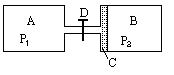 (2)图中A、B气缸的长度和截面积均为30cm和20cm2, C是可在气缸内无摩擦滑动的、体积不计的活塞,D为阀门。整个装置均由导热材料制成。起初,阀门关闭,A内有压强PA=2.0×105帕的氮气.B内有压强PB=1.0×105帕的氧气.阀门打开后,活塞C向右移动,最后达到平衡. 求: