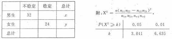 (Ⅱ)将测试表格的数据填满,并回答是否有99%的把握认为“男生比女生更不稳定”。