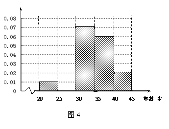 (1)频率分布表中的①、②位置应填什么数据?并在答题卡中补全频率分布直方图(图4),再根据频率分布直方图估计这507个画师中年龄在