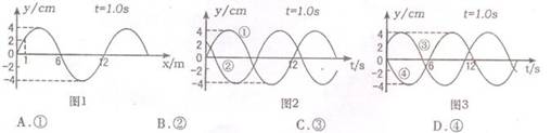 X=1.0m处的质元的振动图象是下面图2、图3中①②③④中的( )