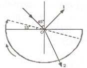 半圆柱绕通过O点垂直于图面的轴线顺时针转过15°,