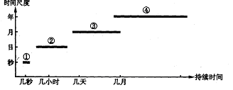 下图表示几种自然灾害的持续时间。读图完成15-16题。