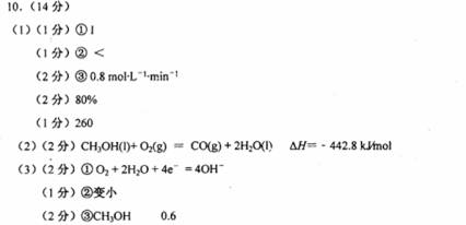 10.(14分)能源短缺是人类社会面临的重大问题。甲醇是一种可再生资源,具有广泛的开发和应用前景。请按要求回答下列问题:(1)工业上一般采用下列两种反应合成甲醇: