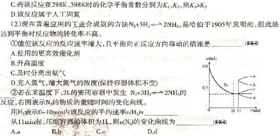 1(11分)氨气在农业和国防工业都有很重要的作用,历史上诺贝尔化学奖曾经有3次颁给研究氮气与氢气合成氨的化学家。