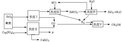 1(12分).由磷矿石、石英、氯化氢等为原料生产白炭黑(SiO2·nH2O)、磷及甲醇,下列工艺过程原料综合利用率高,废弃物少。