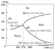 Fe3O4(s)+CO(g)=3FeO(s)+CO2 (g) |