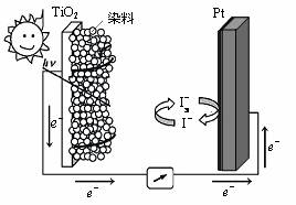 (3)利用半导材料TiO2与染料、铂电极及I