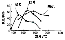 (b)约在520℃时,钛片载体的光催化活性最好