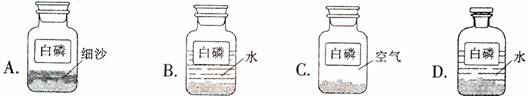4.化学实验室对药品存放有一定的要求,下图所示白磷的存放符合要求的是( )