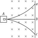 如图所示,铅盒A中装有天然放射性物质,放射线从其右端小孔中水平向右射出,在小孔和荧光屏之间有垂直于纸面向里的匀强磁场,则下列说法中正确的是( )