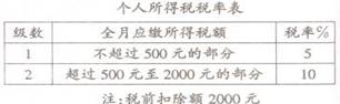 小李的月工资纳税额是60元。不考虑其它因素,则小李的月工资收入应该是 ( )