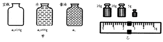 33.小刚同学想测酱油的密度,但家里只有天平、小空瓶,而没有量筒。他思考后按照自己设计