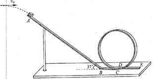 为了研究过山车的原理,物理小组提出了下列的设想:取一个与水平方向夹角为37°、长为L=2.0m的粗糙的倾斜轨道AB,通过水平轨道BC与竖直圆轨道相连,出口为水平轨道DE,整个轨道除AB段以外都是光滑的。其中AB与BC轨道以微小圆弧相接,如图所示。一个小物块以初速度