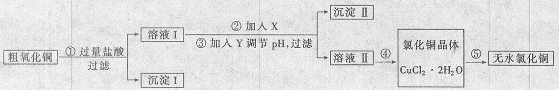 某化学小组用粗氧化铜(含少量氧化亚铁及不溶于酸的杂质)制取无水氯化铜,其实验流程如下所示: