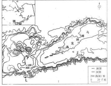 该群岛中的M岛为乌姆纳克岛。读乌姆纳克岛周围的海底地形图并结合所学知识,判断5-6题。