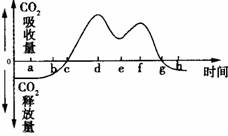 ⑴图甲中的a状态时光合作用 (“>”、“<”或“=”)呼吸作用,在图乙中属于此状态的是时间a、b、c、d、e、f、g、h中的 。