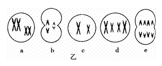 ⑵与曲线②⑤位置相对应的细胞是图乙a-e中的 。