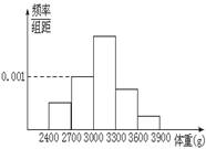 如右图所示,则新生婴儿体重在(2700,3000)内的频率为