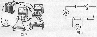 37(1)见图3.(电压表、电流表改接正确各得1分) (2)电路图见图4(2分).B端或右端(1分) l0(1分)