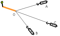 34(1)(10分)在验证互成角度的两力合成的平行四边形定则的实验中,合力与分力产生的效果相同是指__________________________________________。某同学在做这个实验时把橡皮条一端固定,另一端用A、B两个弹簧秤同时拉着到达O点位置,此时两弹簧秤的读数分别是FA=3.41 N和FB=4.18N,其位置记录如图(2)所示.倘若橡皮绳的活动端仅由一个弹簧秤拉着,也把它拉到_________位置,读得弹簧秤的读数为FC=6.14 N,其位置如C.以1 cm表示1N,作力的图示,用作图法求出FA、FB的合力大小(要说明量值)、和方向(只要图示),并说明该实验的结论.