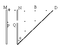 35、如图所示,M、N为两块带等量异种电荷的平行金属板,两板间电压可取从零到某一最大值之间的各种数值。静止的带电粒子带电量为+q,质量为m(不计重力),从点P经电场加速后,从小孔 Q进入N板右侧的匀强磁场区域,磁感应强度大小为B,方向垂直于纸面向外,CD为磁场边界上的一绝缘板,它与N板的夹角为a=45°,孔Q到板的下端C的距离为L,当M、N两板间电压取最大值时,粒子恰垂直打在CD板上。求