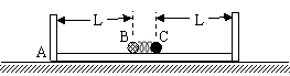 ,槽内有两个小球B、C,它们的质量分别是mB=m,mC=2m,两球间是很短的被压缩的轻弹簧(球与弹簧不连接),且B球到木槽左端、C球到木槽右端的距离均为L,这时弹簧的弹性势能为