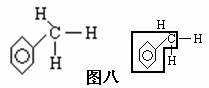 同样甲基取代苯环上的氢原子,即得甲苯,其构型如图八: