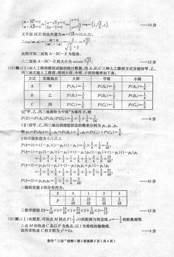 (I)求甲、乙、丙三地都恰为中雨的概率;