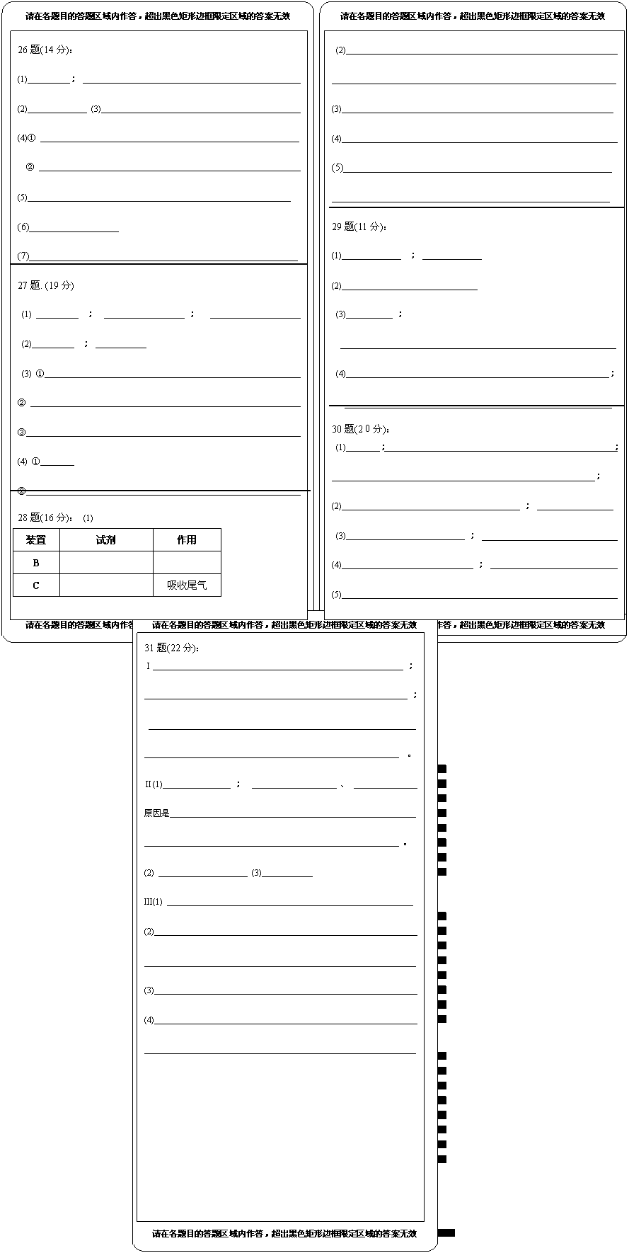 29.(11分)(1)3 ⅥA (各1分)(2) F–、Na+、Al3+(若有“>”得分)(2分)