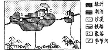 23.图中a、b、c、d四个聚落,最容易形成城镇的是
