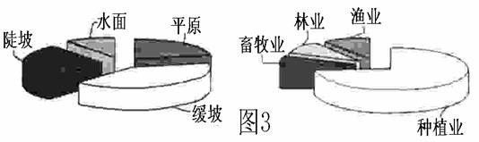 图为“我国江南丘陵某地地形结构和农业用地结构的饼状图”。对比分析回答27-28题。